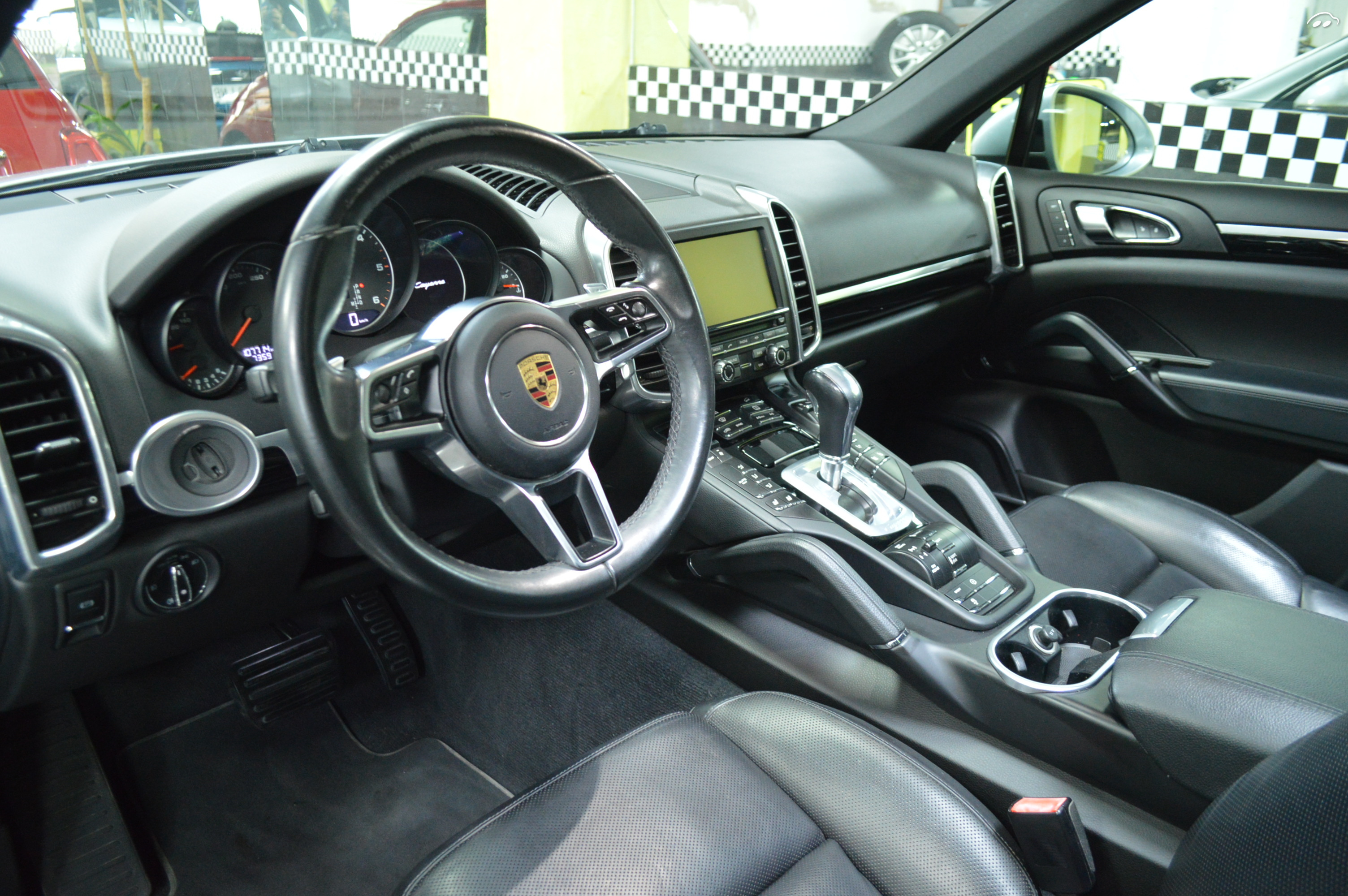 Porsche Cayenne 3.0 D de 262 cv . Nacional con todas las revisiones en casa oficial Porsche centro Baleares, impecable estado .Llantas 21″ turbo, cristales tintados, techo panorámico, faros led adaptables, portón trasero eléctricos, molduras exteriores en negro, asientos de piel deportivos eléctricos con memoria calefacción y refrigeración, volante deportivo multifunción con levas, asistentes de conducción: carril ,ángulo muerto, sensores de parking con cámara de marcha atrás, sport boton, PCM con navegador ampliado, suspensión adaptativa . *Financiamos el 100% hasta 15 AÑOS con DESCUENTOS especiales (consúltenos) *Procedencia de particular NO Rent a car *Kilometraje certificado *Cambio de nombre incluido. *Aceptamos su vehículo como parte de pago. *Hacemos entregas por toda España. «50 AÑOS DE EXPERIENCIA NOS AVALAN»